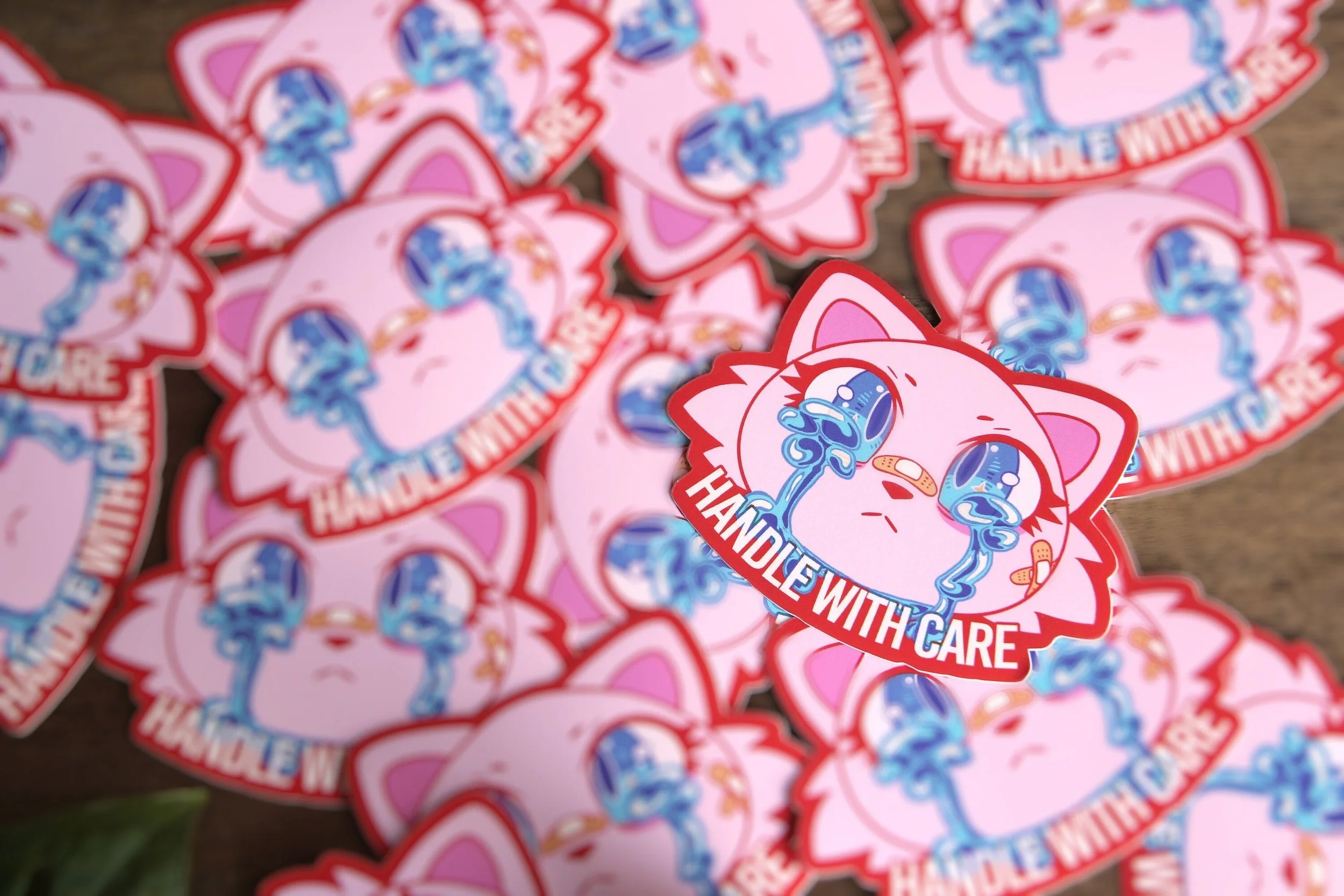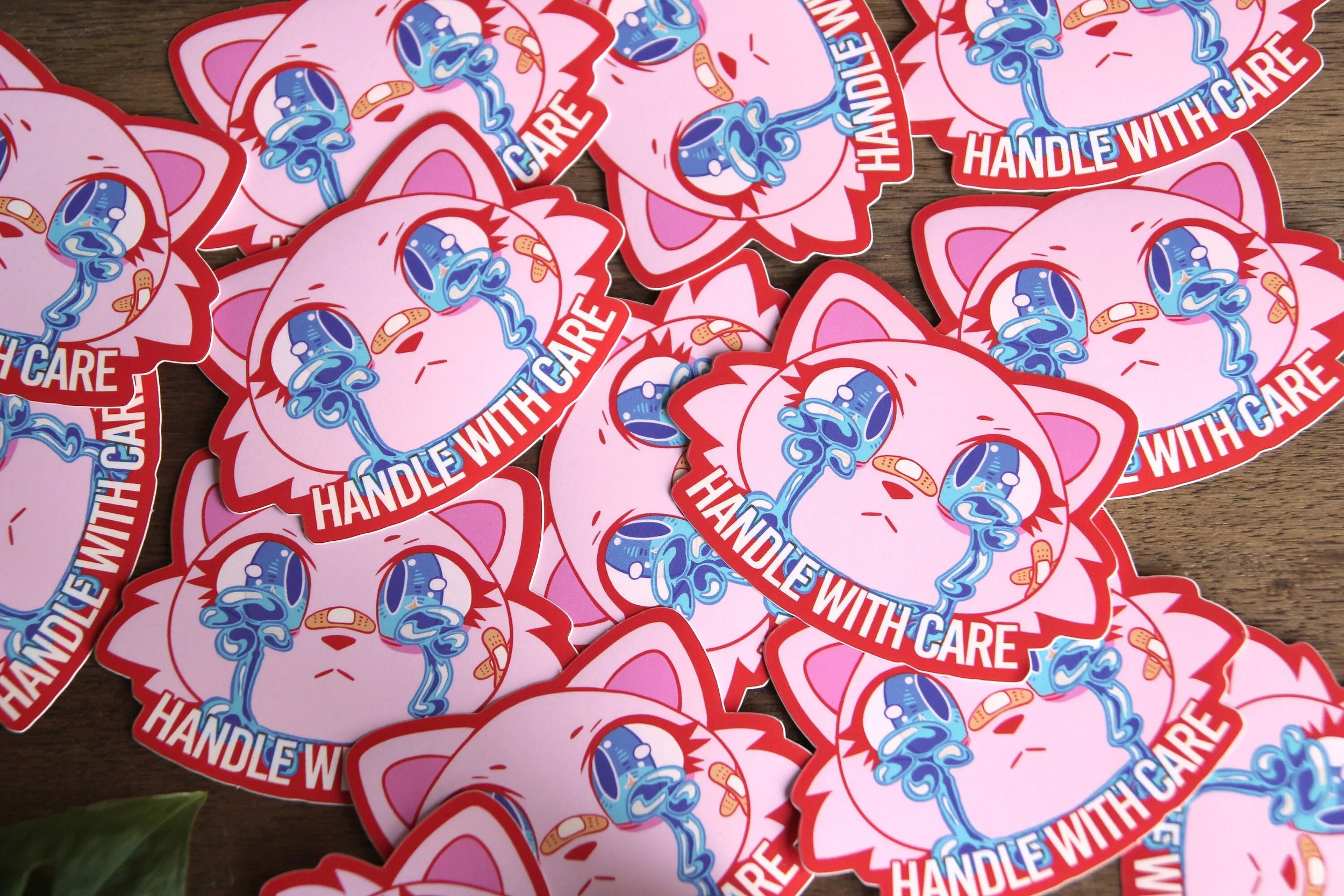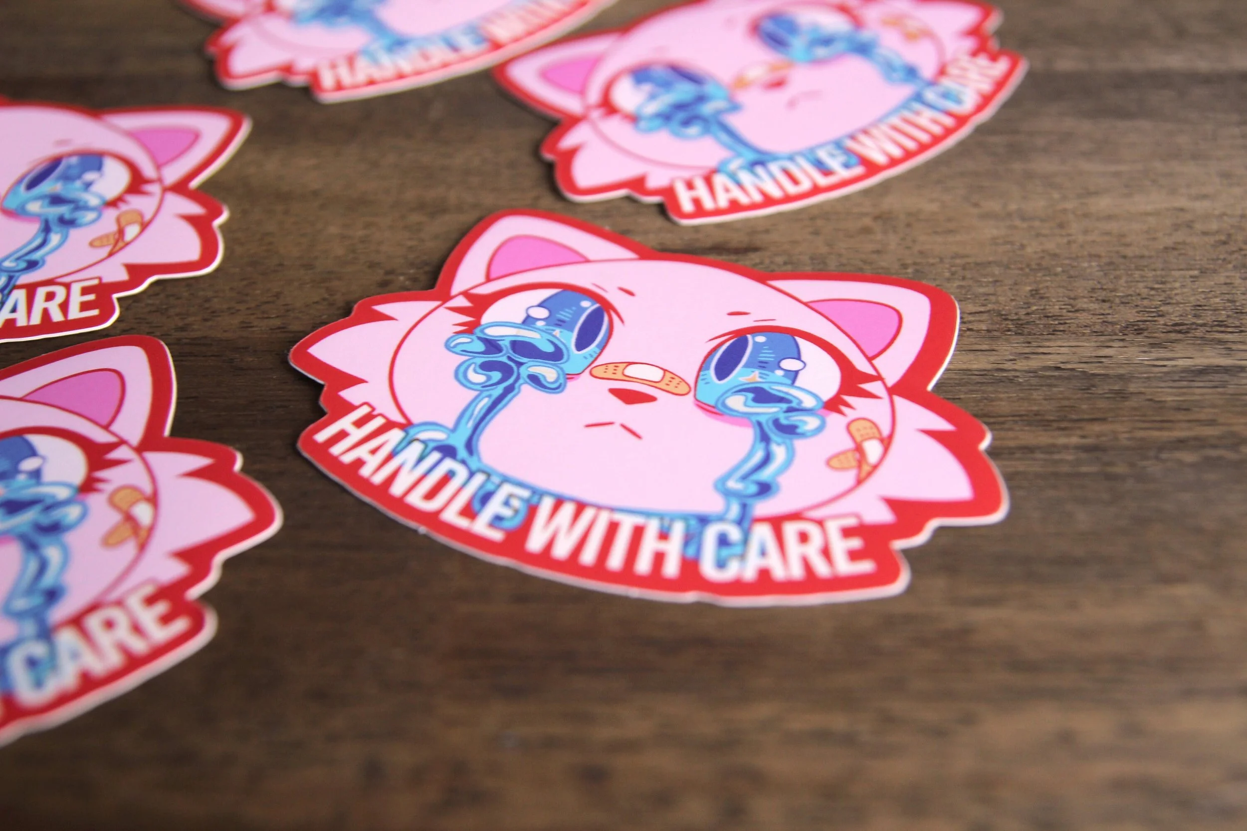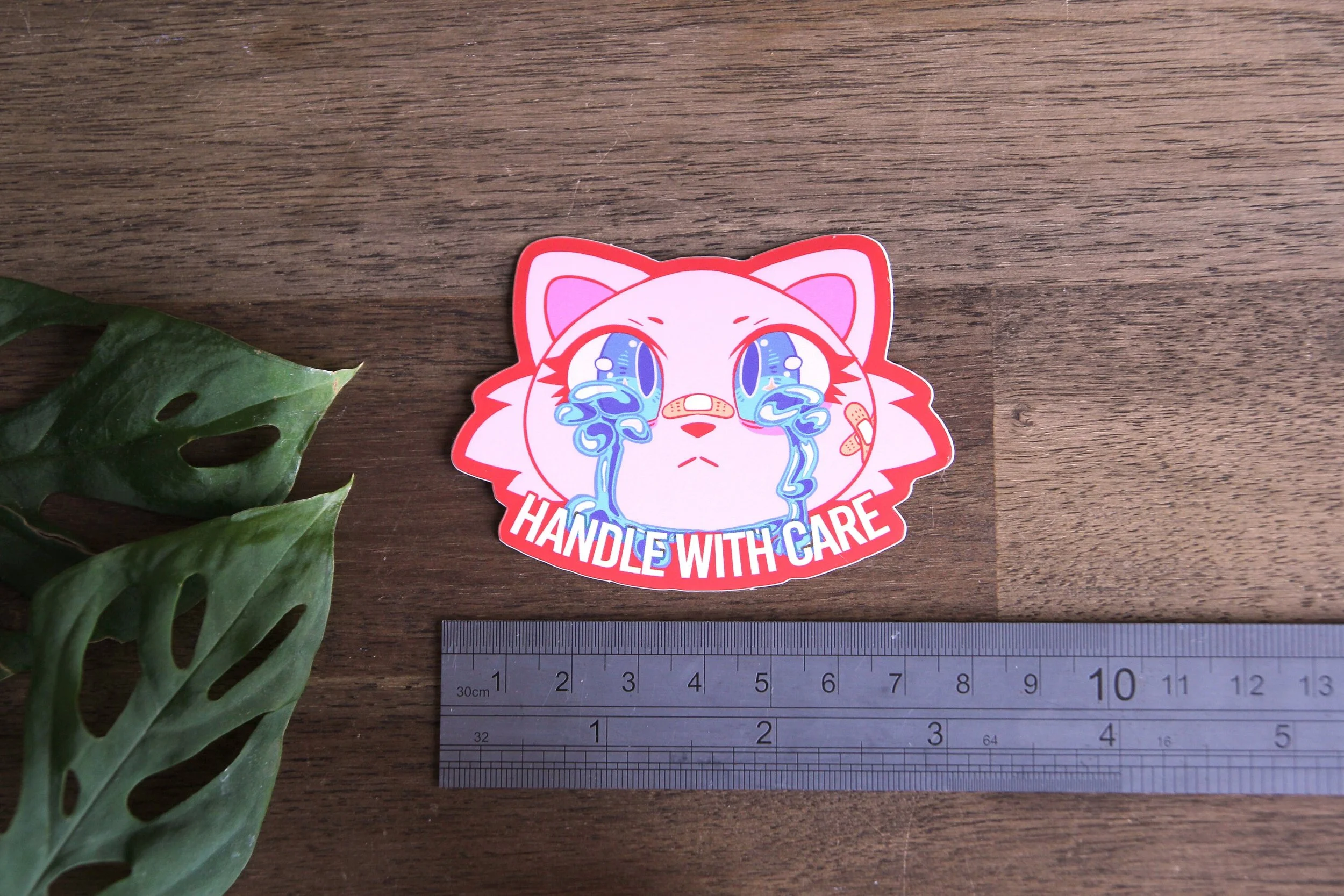 HANDLE WITH CARE | Crying cat high quality matte waterproof vinyl sticker